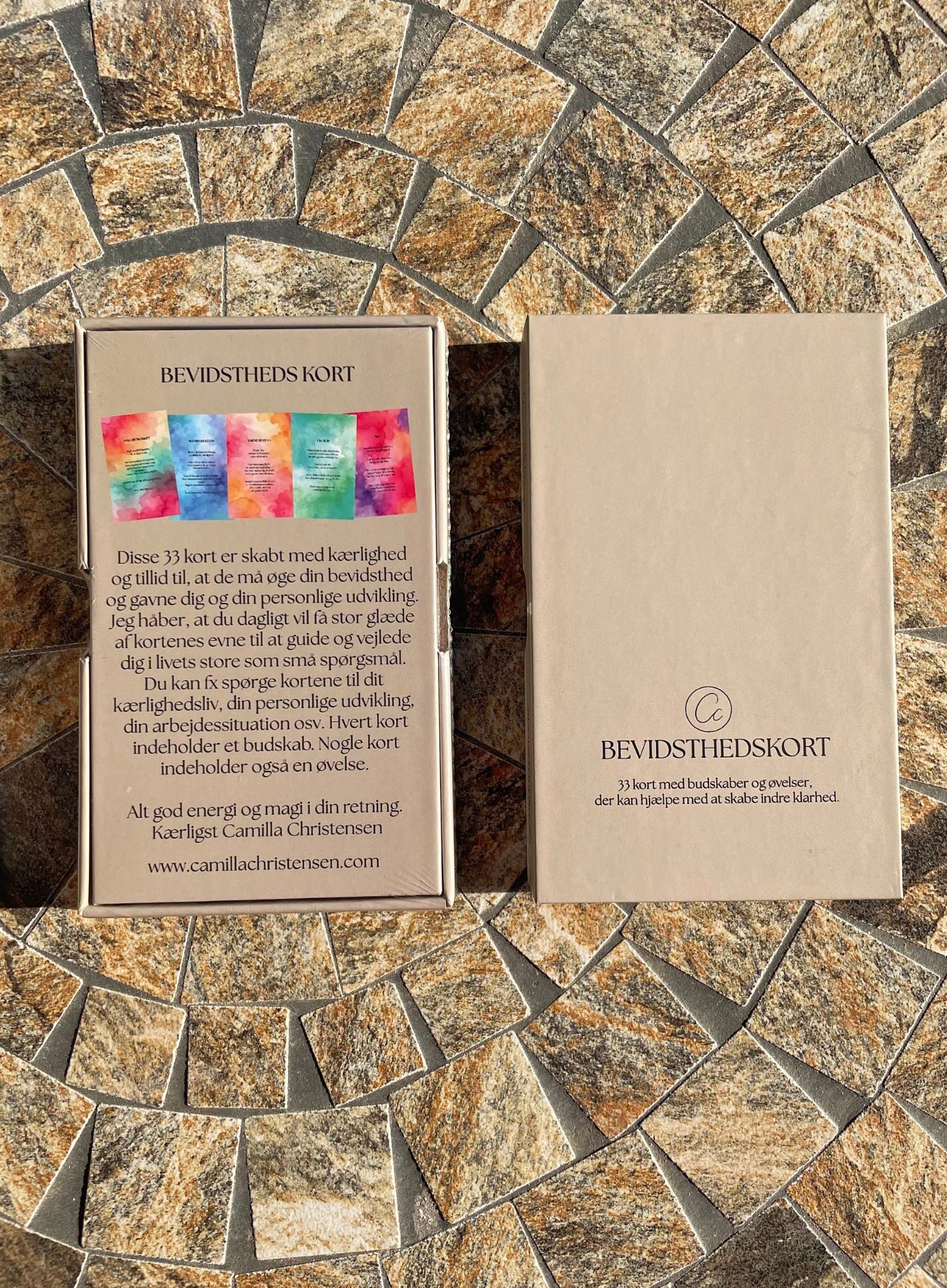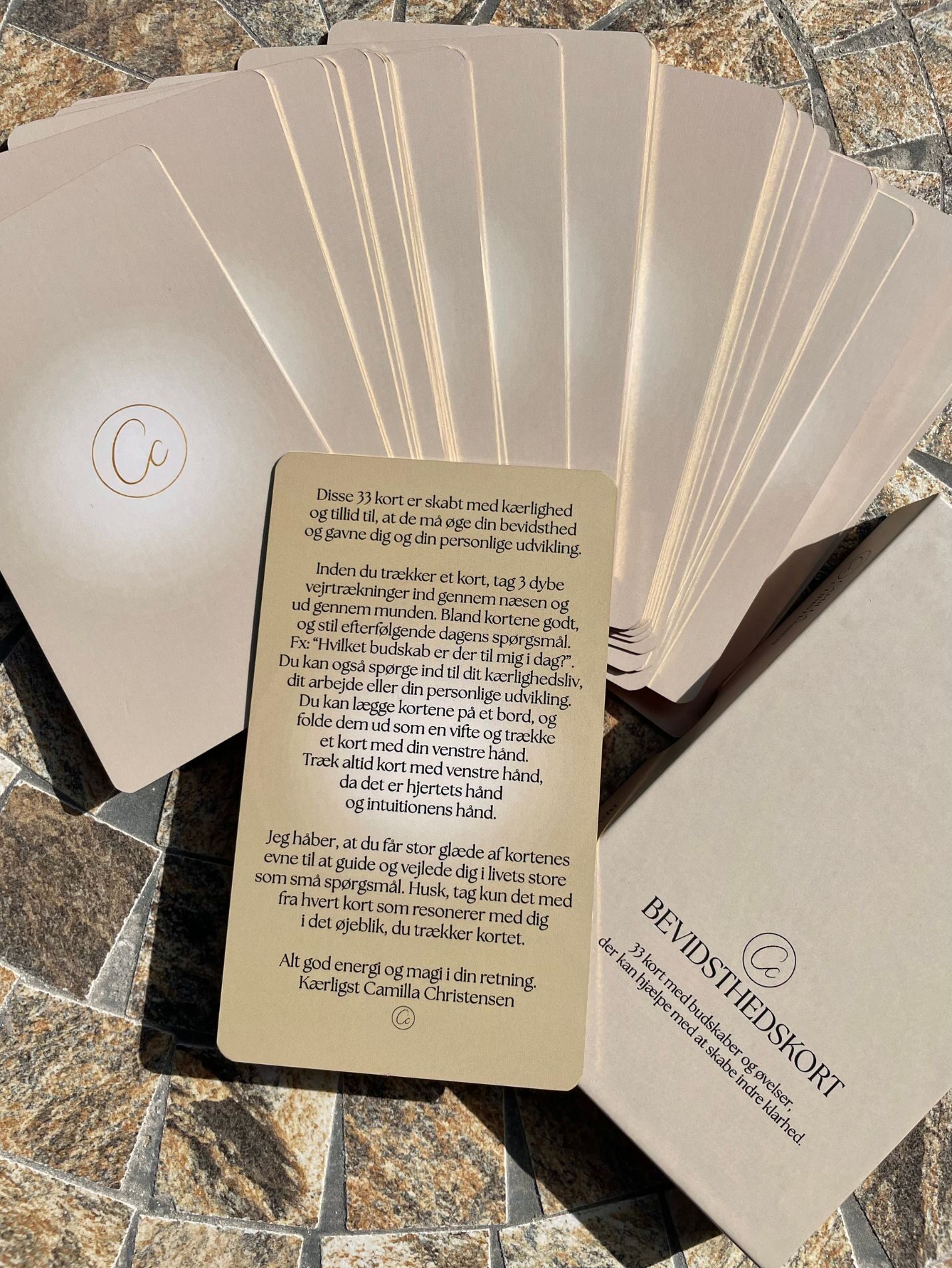 Disse 33 unikke bevidsthedskort har jeg skabt i kærlighed og tillid til at de må øge din bevidsthed og være en støtte til din personlige udvikling. Kortene kan være med til at guide og vejlede dig i livets store som små spørgsmål. Så som: